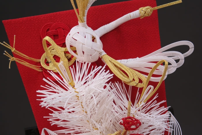 ![]() ![]() この水引飾りは全体が紅白で作られた斬新な水引飾り、一部アクセント的に金を配色しています。 |