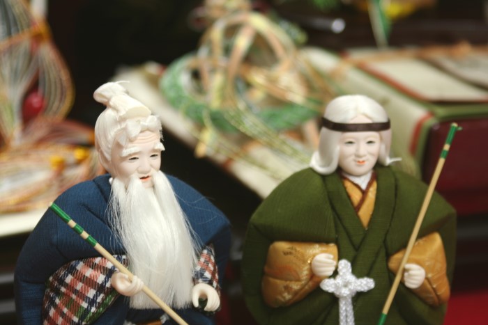 高砂のお人形は「ともに白髪の生えるまで、行く末この姿・・」との意味から別名"友白髪"とも呼ばれ、その縁起の良さと親から子へ伝えたいメッセージとしてこの上もないことからオプションとしてよくご要望いただきます。
